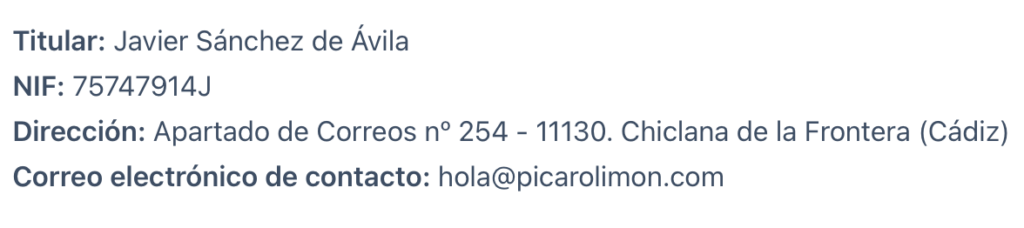 Aunque en Pícaro Limón nos gusta hablar con humor, esta parte se pone un poco más seria (pero solo un poco). Aquí va la info legal obligatoria, porque la transparencia es sexy y además, la ley manda.